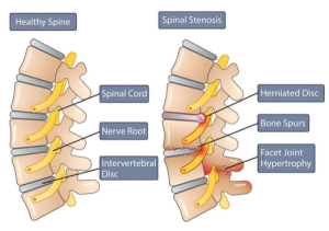 Esta afección suele ser consecuencia de procesos degenerativos asociados al envejecimiento, como la artrosis de las articulaciones facetarias, el engrosamiento del ligamento amarillo y la pérdida de la altura discal. Otros factores de riesgo incluyen traumatismos, anomalías congénitas, espondilolistesis y hábitos posturales inadecuados.