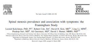 Spinal stenosis prevalence and association with symptoms: the Framingham Study. Kalichman L, Cole R, Kim DH, Li L, Suri P, Guermazi A, Hunter DJ. Spine J. 2009;9:545–550. doi: 10.1016/j.spinee.2009.03.005.